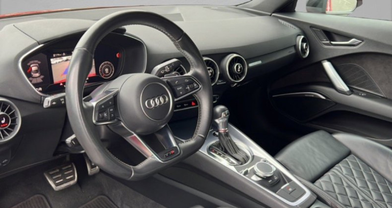 cylindrée : 1984 cm3 nb. vitesse : 6 - pack brillance noir audi exclusive *** avec : calandre noir brillant *** avec : entourage des vitres laqué noir brillant - pack rangement et coffre *** avec : filet coffre *** avec : prise 12v dans le coffre *** avec : vide-poches sous le siège conducteur *** avec : vide-poches sous le siège passager *** avec : filet dans la zone des pieds côté passager av *** avec : filet de rangement au dos des sièges av *** avec : 2 vestes de sécurité *** avec : 2ème lampe de coffre à led *** avec : sangle de maintien latérale - phares audi matrix led - jantes audi sport en aluminium coulé 20 style 5 branches en v, titane mat, pneus 255/30 r20 - bang & olufsen sound system - sellerie en cuir nappa fin pour sièges sport s à l'av avec estampillage s sur le dossier des sièges av - audi side assist (assistant de changement de voie) - audi connect en combinaison avec la navigation mmi plus avec mmi touch - caméra de recul - vitres surteintées (privacy glass): lunette ar et vitres latérales ar surteintées - advanced key système de vérrouillage et de dévérouillage du véhicule sans utilisation de la clé. démarrage et arrêt du moteur main libre par touche start/stop - audi parking system plus: signal sonore et visuel av/ar facilitant le stationnement et les manoeuvre - sièges av chauffants - etriers de freins peints en rouge - réception radio numérique (dab) - lave-phares haute pression - audi smartphone interface (apple carplay ou google androidauto) - boîtiers de rétroviseurs extérieurs en noir - cric de levage - aileron ar télescopique à commande automatique ou manuelle par bouton - applications décoratives en aluminium brossé mat - audi parking system : facilite le stationnement à l'aide d'un signal sonore indiquant la distance ar - audi singleframe calandre en gris platine avec doubles entretoises horizontales style aluminium et emblème tts - audi virtual cockpit - boîtiers de rétroviseurs extérieurs en style aluminium - climatisation automatique confort - diffuseur ar en gris platine avec bordure style aluminium - eclairage anti-éblouissant de l'intérieur du véhicule à led, spots de lecture, lumière réfléchie pour la console centrale, boîte à gants éclairée, éclairage au niveau des pieds, éclairage du coffre, catadioptres de portes passifs et miroirs de courtoisie éclairés - feux ar à led avec feux de recul et feux ar de brouillard intégrés - frein de stationnement électromécanique - jantes en aluminium coulé 18 style 10 branches en v partiellement polies avec pneus 245/40 r18 - mmi radio intégré dans l'audi virtual cockpit - moulures de seuils de portes avec insert en aluminium et inscription tts - navigation mmi plus avec mmi touch: système de navigation - pare-chocs avec prises d'air latérales accentuées avec entretoises horizontales style aluminium et extension de bas de caisse - pommeau du levier/sélecteur de vitesses style aluminium avec emblème tts - rétroviseur intérieur jour/nuit automatique - rétroviseurs extérieurs avec clignotants à led intégrés réglables électriquement avec miroir asphérique à gauche, convexe à droite dégivrants et escamotables électriquement - style aluminium étendu à l'intérieur avec pédalier et repose-pied en acier inoxydable - trappe à carburant en aluminium avec estampillage tt - volant sport tts contour en cuir multifonctions plus style 3 branches aplati en bas avec emblème tts surpiqûres spécifiques s et palettes de changement de vitesses avec s tronic - xénon plus incluant bande homogène des feux diurnes à led et éclairage tout temps - airbags de tête - airbags grand volume conducteur et passager av - airbags latéraux av - antipatinage électronique asr - applications sur éléments de l'habitacle de couleur peinture laquée anthracite - assistant de freinage en cas de collision - audi active lane assist - audi drive select (permet le réglage du mode de conduite) - audi magnetic ride - audi space frame - audi tracking system - blocage électronique de différentiel eds - cache-bagages - ceintures de sécurité 3 points à enrouleurs à toutes les places avec prétensionneurs et limiteurs de tension à l'av et témoins de contrôle de ceinture attachée - ciel de pavillon en tissu gris roche - clé à fréquence radio - colonne de direction de sécurité complète le potentiel de protection des ceintures et des airbags - colonne de direction réglable mécaniquement en hauteur et en profondeur - console centrale - contrôle électronique de stabilisation (esc) avec blocage transversal électronique - direction assistée électromécanique - direction progressive contribuant à une augmentation de la dynamique de conduite grâce à une démultiplication directe et progressive - dossiers banquette ar rabattables - eléments de l'habitacle de couleur peinture au quartz anthracite - etriers de freins laqués noir avec inscription tts - feux de freinage adaptatifs, les feux de détresse clignotent en cas de freinage d'urgence afin de prévenir les voitures qui suivent - filtre à particules diesel sans additifs - fixation isofix pour sièges ar - identification du modèle - lave-essuie-glace - lunette ar dégivrante - oeilletons de fixation dans le coffre - outillage de bord - pare-soleil rabattables et pivotants côté conducteur et passager avavec miroir de courtoisie éclairé et occultable - prise 12 v dans la console centrale av - protection antidémarrage électronique - recherche mmi intelligente et complète par saisie de texte dans les menus - recommandation de repos qui analyse le comportement routier au moyen de différents capteurs et prévient le conducteur lorsqu'elle détecte des indices supposant un début d'inattention de sa part - récupération d'énergie lors des phases de freinage ou de décélération permettant une économie de carburant - régulateur de vitesse - set de réparation pour pneus - sièges av réglab
