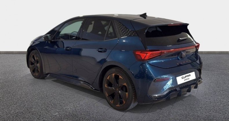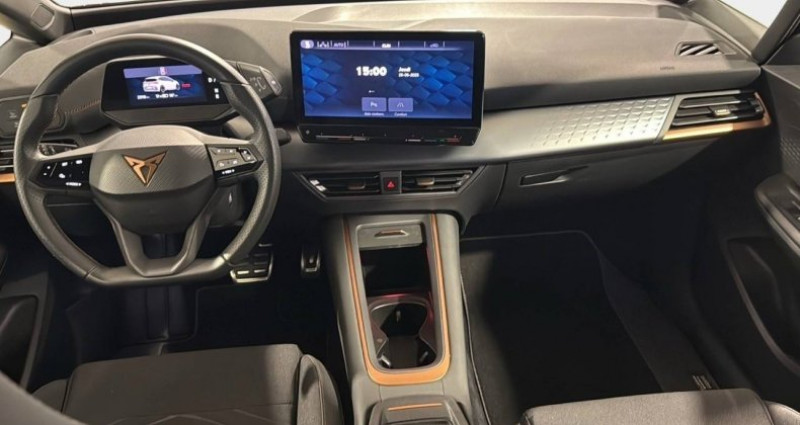 nb. vitesse : 1 - pack hiver *** avec : sièges av chauffants - jantes alliage 19 typhoon copper - vitres ar surteintées - feux ar led avec bandeau infinite light - jantes alliage 18 cyclone - lane assist - aide au maintien dans la voie - light assist - passage automatique des feux de route aux feux de croisement - projecteurs full led avec cérémonie de bienvenue - pédalier en aluminium - radars de stationnement av et ar - système de navigation connecté sur écran tactile 12 - 2 ports usb-c à l'av et à l'ar - 7 airbags (frontaux, latéraux, rideaux) - acc - régulateur de vitesse adaptatif - calandre noire en relief - caméra de recul - climatronic 2 zones - connectivity box avec chargeur à induction - contrôle vocal - cupra box - cupra connect - câble de recharge mode 3- 32a pour borne de recharge (type 2, courant triphasé, 22 kw) - digital cockpit 5,3 - direction progressive - détecteur de fatigue - détecteur de pluie et luminosité - ecall - appel d'urgence - eclairage d'ambiance multicolore - eclairage de bienvenue avec projection du logo cupra au sol - esc sport - front assist avec détection des piétons et des cyclistes - full link sans fil - inserts éxterieur copper - jupes latérales et rétroviseurs contrastés - keyless access : accès et démarrage mains-libres - kit de sécurité cupra - poignées de portes rétroéclairées (av) - rétroviseurs chauffants et rabattables électriquement - sièges baquets en tissu seaqual recyclé - suspension sport - système audio 5 hp - tapis de sol premium cupra - traffic sign recognition - reconnaissance des panneaux de signalisation - volant cupra multifonction chauffant