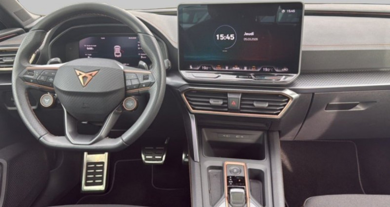 cylindrée : 1498 cm3 nb. vitesse : 6 - pack intelligent drive standard -intelligent park assist -pre-crash : système de prévision des collisions -pack drive assist xl ( side assist - détecteur d'angle-mort, exit assist, exit warning, travel assist et lane assist plus) *** avec : intelligent park assist *** avec : pre-crash - système de prévision des collisions *** avec : pack drive assist xl - side assist - détecteur d'angle-mort - exit assist, exit warning - travel assist et lane assist plus - aide au maintien dans la voie (lane assist) - aide au stationnement av/ar - bandeau ar ''infinite light'' intégrant le logo cupra lumineux, avec signature lumineuse tri-led et cérémonie de bienvenue - climatisation automatique tri-zone climatronic - jantes 18 performance anthracites - projecteurs full led avec signature lumineusetri-led - volant supersports cupra en cuir avec boutons satellites, chauffant, avec palettes de changement de rapport - 4 prises usb-c éclairées et bluetooth - abs - accoudoir central av - accès et démarrage mains-libres - airbags latéraux, rideaux et central - boîte de vitesse automate sequentiel à 6 vitesses - caméra de recul - capteur de pluie et de luminosité - ciel de pavillon noir - connectivity box - amplification du signal et chargeur à induction - contrôle de la traction (tcs) - cupra box - cupra connect - câble de recharge mode 2 pour prise domestique - digital cockpit 10,25 - direction dynamique - dossiers ar rabattables 2/3 - 1/3 - ecall - appel d'urgence - eclairage de bienvenue avec projection du logo cupra au sol - esc - feux de route intelligents (light assist) - fixations isofix avec top-tether à l'ar - front assist avec détection des piétons et cyclistes - full link avec carplay et android auto sans fil - lampes de lecture à l'av et à l'ar - pare-soleils avec miroirs de courtoisie éclairés - projecteurs anti-brouillard avec cornering light et coming home - radio numérique dab - réglage en hauteur et lombaire des sièges av - régulateur de vitesse adaptatif acc - rétroviseur intérieur électrochrome - seuils de porte cupra rétro-éclairés - smart ambient light (éclairage d'ambiance intérieur intelligent) - système audio à 6 hp avec contrôle vocal - système d'info-divertissement avec écran tactile hd 12,9 et touches de commandes tactiles rétro- éclairées - système d'observation du conducteur avec alerte de perte d'attention ou de somnolence - système de contrôle de la pression des pneus - tapis de sol en matière recyclée avec surpiqûres cuivrées cupra - traffic sign recognition - reconnaissance des panneaux de signalisation - vitres ar surteintées - vitres électriques av